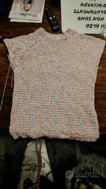Gilet fatto a mano all’uncinetto, realizzato con filato multicolore dai toni pastello.