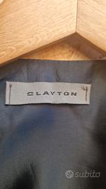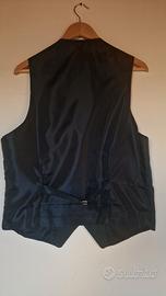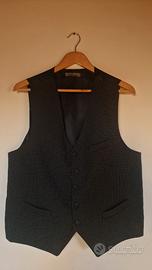 Gilet Clayton monopetto blu scuro (anche se in foto sembra nero) con piccoli pois bianchi, taglia XL. Misure indicative cm: spalle 38, lunghezza schiena 58, lunghezza davanti 60, larghezza 50. Cinturino posteriore a stringere.