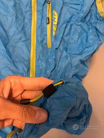 Gilet camp tecnico unisex con taschina davanti chiusa da cerniera che si può stringere in vita . Ha il suo marsupio per chiuderlo Unisex technical camp vest with a zippered front pocket that can be cinched at the waist. It has its own pouch for closing it.