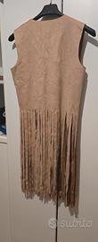 Gilet in camoscio con frange, color biscotto. Nuovo con cartellino. TU
