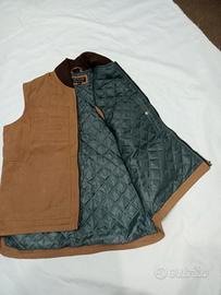 Gilet tecnico ma elegante in tessuto Tin Cloth con finitura a cera e l'innovativo isolante PrimaLoft® per uno strato isolante per garantire una comprovata capacità di resistere alle condizioni proibitive incontrate da forestali, cacciatori, addestratori di cani, escursionisti ed artigiani. La tela canvas a trama fitta costituisce una barriera alle spine, ai rovi e all'abrasione e, grazie alla sua finitura cerata, si scrolla di dosso acqua e fango senza problemi. Questo resistente gilet è foderato con finitura a secco e il suo orlo a goccia mantiene coperti durante i piegamenti. Cerniera frontale scorrevole in metallo, colletto a costine in miscela di lana, tasche scaldamani foderate in flanella, tasche a scomparsa sul petto e tasche multiuso a fessura.