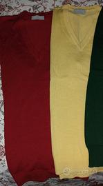 Vendo 2 gilet da uomo 1 dei quali nuovissimo, mai indossato e solo quello giallo indossato un paio di volte e in ottime condizioni, in lana merino extrafine e 100% pura lana vergine, nei colori rosso e giallo (il verde e il bordeaux sono stati venduti), tutti con scollo a V, smanicati e bordo inferiore tipo maglione, made in Italy, tutti taglia L. Misure: lungh. da c/dietro tutti tra i 70 e 71 cm, largh. spalle cm 50, largh. petto da ascella ad ascella cm 56. Prezzo eu 25 cad, piccolo sconto per l’acquisto dei 2.