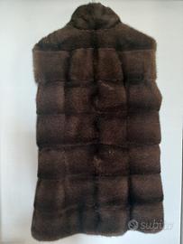 Elegante gilet di visone, foderato all'interno (marrone), chiusura con un bottone al collo e ganci, perfetto da portare sopra un giubbotto in pelle. Vendo perché ora mi è troppo piccolo, é una taglia S, per la lunghezza vedere le foto.