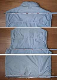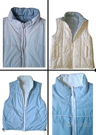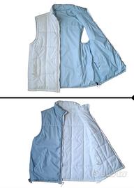 Gilet smanicato Double-Face Bianco/Azzurro di taglia XXL riportata sull' etichetta , ma veste aderente ( come XL). Consiglio di controllare le misure riportate in foto. Condizioni buone con cerniere funzionanti e tasche laterali.