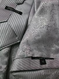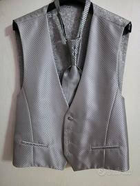 Gilet e cravatta eleganti per matrimonio o altre cerimonie. Colore grigio argento lucido che cambia a seconda della luce.