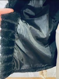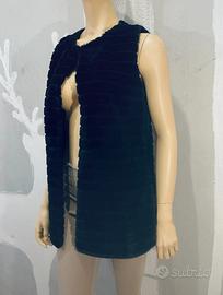 Gilet / smanicato in pelliccia ecologica, colore nero, fodera nera, molto morbido e piacevole al tatto, chiusura in alto con gancetto metallico, marchio Zuiki, taglia indicata Unica, starà bene