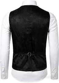 Vendesi gilet elegante da cerimonia nuovo, dotato di etichetta e confezione originale. Accessorio estremamente elegante, vistoso e bello da vedere, che si intona con la stragrande maggioranza dei tipi di abito, blazer e smoking. Colore: nero con decorazioni floreali color oro. Taglia L con vestibilità regolare. Materiale: sintetico. Misure: (vedasi foto illustrativa). Non si accettano restituzioni dovute a errori nella scelta della taglia, quindi si consiglia di valutare bene prima di procedere con l'acquisto. Spedisco in tutta Italia a 6,00 euro (pacco tracciabile), previo pagamento tramite Paypal o altri metodi di pagamento. Rilascio il mio numero di telefono previa richiesta via e-mail; se non potete permettervi il costo di una chiamata lasciate perdere. Offro e pretendo la massima serietà. Esigo rispetto e buona educazione nei contatti con il sottoscritto; in caso contrario, verrete ricambiati con la vostra stessa moneta. Astenersi vari perditempo, arroganti, provocatori, paranoici diffidenti, pseudosapientoni, tirchi, scrocconi e accattoni: non ho né tempo da perdere né bisogno di soldi.