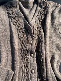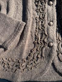 Elegante gilet tg 46 Colore tortora in lana, mohair e acrilico. Abbottonatura sul davanti Scollo a V Bordatura arricciata.