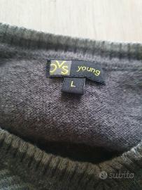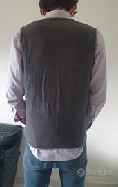 Gilet grigio da uomo con scollo a V, ottime condizioni, 50% lana e 50% cotone, taglia L, misure: spalle 36