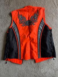 Gilet molto apprezzato negli USA in un grintoso e iconico arancione Harley Davidson regolabile sui lati con comodi lacci incrociati. Larghezza (ascella/ascella) cm54, lunghezza cm65. Usato poche volte