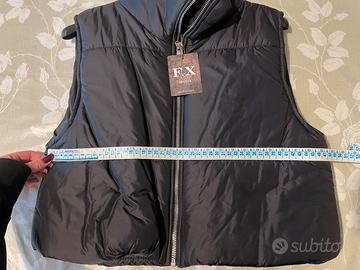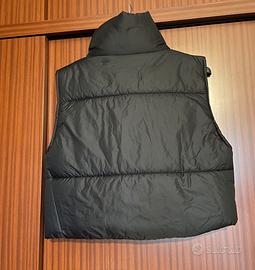 Gilet imbottito nero da donna, modello leggero ma caldo, con zip centrale e collo alto.