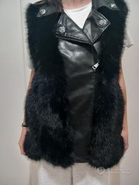 Gilet in ecopelle con pelliccia