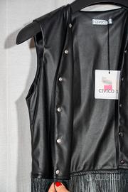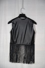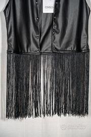 Gilet nero in ecopelle con frange nere e borchie.