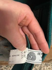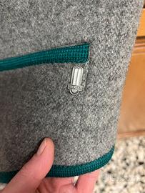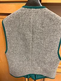 Gilet tirolese in lana cotta taglia 46 grigio con profili verdi, bottoni in legno , marca Merlet , nuovo mai usato .