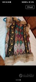 Splendido gilet in vero lapin e pelle e stoffa ( Ps rimane un po' rigida la pelle, presenta un buco laterale , si ripristina con cucitura :-) ).calza poco vedere i cm in foto! Colori etnici, interno foderato, in pregiato raso! Malgrado tutto è... Davvero pazzesco! Grazie