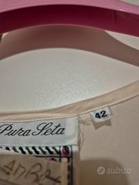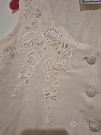 Gilet color crena in seta pura con deoro a perline e bottoni gioiello Tagiia 42
