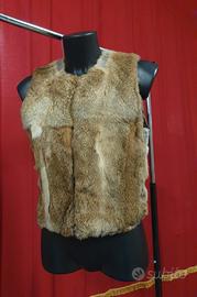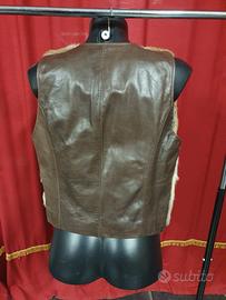 Gilet donna marca Kookai in pelle e pelliccia di coniglio tg 40. La parte anteriore é in pelliccia di coniglio mentre la parte posteriore é in 100% pelle di bufalo color marrone, fodera interna in acetato. Chiusura frontale con gancetti. Condizioni ottime, nessun graffio o abrasione nella pelle, piccoli difetti non invalidanti. Come da foto