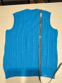 Gilet azzurro, caldo pur non essendo ingombrante, comodo anche sotto una giacca, scollo a V.