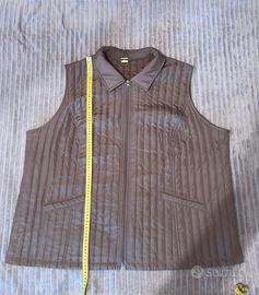 Gilet leggermente trapuntato a coste verticali da donna, color talpa, taglia europea 56(misure come da fotografie), con colletto a camicia, due tasche laterali e cerniera integrale. Nuovo, mai indossato senza cartellino.