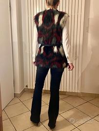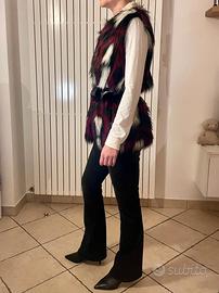 Gilet lungo in pelliccia sintetica Pinko con cintura in vera pelle nera, taglia 42. Usato pochissimo