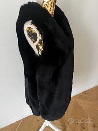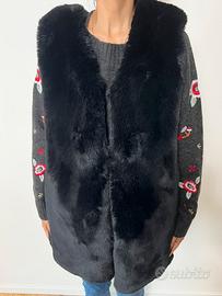 Gilet in finta pelliccia nera, indossato due sole volte. Interno foderato e dettagli in ecopelle. Condizioni perfette. Ottimo sopra una giacca, una maglione o un giubbino in jeans o pelle. In foto indossato da una taglia S.