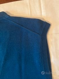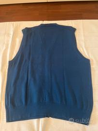 Gilet McKenzy taglia XL, 100% cotone, colore bluette, modello smanicato con scollo a V e bottoni, sportivo ed elegante, anche sotto giacca, con bottone di ricambio. Ottime condizioni. Misure: spalle 44 cm, ascelle 55 cm, lunghezza 67 cm.