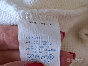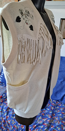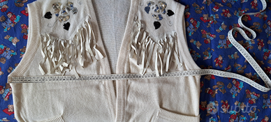 Gilet lana e angora con decorazioni in paillettes e frange in camoscio, taglia M 42/ 44