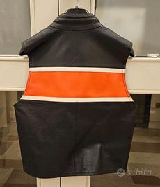 Gilet mai usato in similipelle (vedi foto etichetta) ideale per moto. Taglia xs per ragazza ragazzo, donna, uomo di piccola taglia.