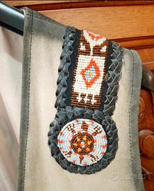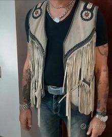 Gilet scamosciato in pelle con decorazioni microperline eseguito interamente a mano. Mai indossato ottimo per manifestazioni o per guidare la tua moto custom .pagato 390 euro la taglia è una large L