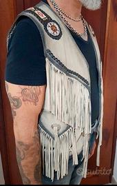Gilet moto panciotto uomo pelle Western biker custom native ameridien .