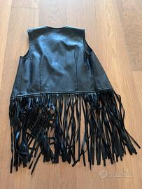 Gilet nero pelle con frange 14 anni tipo Coachella