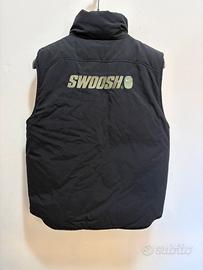 Gilet Nike Swoosh originale, modello reversibile con doppia colorazione nero / beige, perfetto per outfit streetwear e casual.