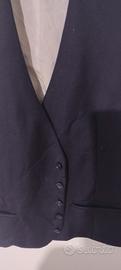 Gilet panciotto per abito completo uomo, blu marino con fodera bianca ( la fodera nel lavaggio ha preso in alcuni punti il colore nero come si vede in foto). Due taschine anteriori e due taschine con bottone interne.