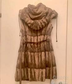 Stupendo gilet lungo di vera pelliccia. Interno in cachemire. Cintura in pelle scamosciata. Si chiude con i classici ganci da pelliccia (segnalo che il promo in alto e’ da riprendere con ago e filo). Il cappuccio si puo usare anche come maxi collo. Tasche nascoste. Capo sartoriale che ho indossato poche volte, vendo con sua custodia. Veste una M (44) e una L (46).