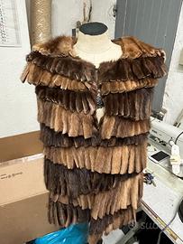 Gilet in pelliccia di lapin rex con frange in visone bicolore. Reversibile. Taglia 44 circa. Visibile a Genova senza impegno