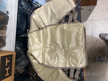 Realizzato in materiali resistenti come PVC o cordura rinforzata, a volte con caratteristiche idrorepellenti.