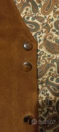 Gilet da uomo anni 80 in perfette condizioni, taglia 46, tessuto in vera pelle, regolatori posteriori, bottoni. Colore marroncino.