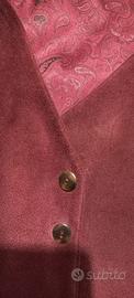 Gilet da uomo anni 80 in perfette condizioni, taglia 48, tessuto in vera pelle, regolatori posteriori, bottoni. Colore vinaccia.