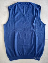 Gilet uomo in 100% lana, blu chiaro, Tg. 50. Marca Massimo Rebecchi. Misure: lunghezza 66 cm, larghezza torace 49cm.