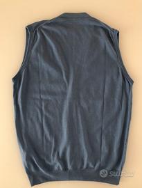 Cardigan smanicato in maglina di cotone, colore azzurro ceruleo.