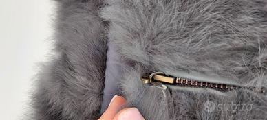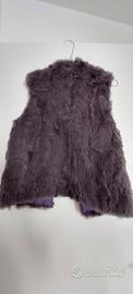 Gilet in vera pelliccia di coniglio grigio scuro,