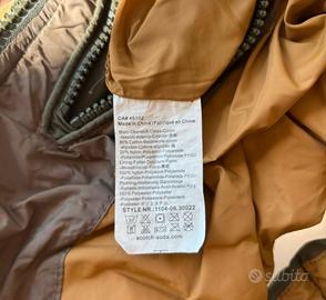 Colore verde fuori e senape dentro, con cerniera e cappuccio, marca Scotch&soda.