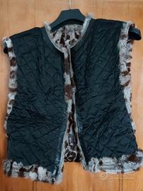 Gilet vintage in pelliccia di lapin - stampa animalier