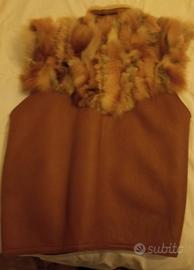 Gilet vintage in montone shearling vero con pelliccia di volpe - Umbertino (Veneto)