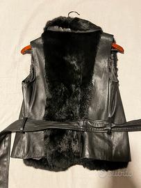 Gillet donna della Please , in vera pelle mista a pelliccia di coniglio . Guardare misure ed etichetta in foto . Indossato solo una volta , si presentanin ottime condizioni .