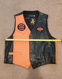Bellissimo e particolare gilet in pelle con patch Harley-Davidson nuovo mai indossato come si evince da cartellino ancora attaccato.