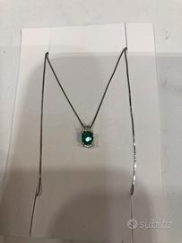 Collana in oro bianco con smeraldo e diamante