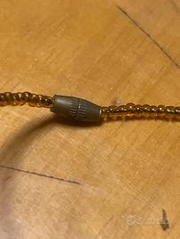 Materiali: Questo tipo di collana è tipicamente realizzato con conchiglie di ciprea naturali (cowrie shells), perline di legno marroni e talvolta piccole perline di vetro o pietre dure.
