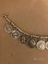 “Bracciale DoDo Pepita in argento 925 con chiusura T-bar (versione vintage)”con 9 monete. Mai usato, prezzo in negozio 1400/1600 €.