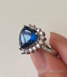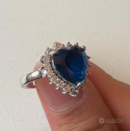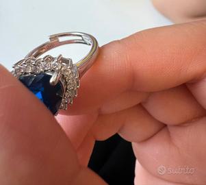 anello regolabile, argento riconosciuto, con cuore blu